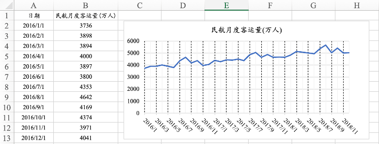 图16. 33 2016年1月至2018年12月全国民航客运量的时序图