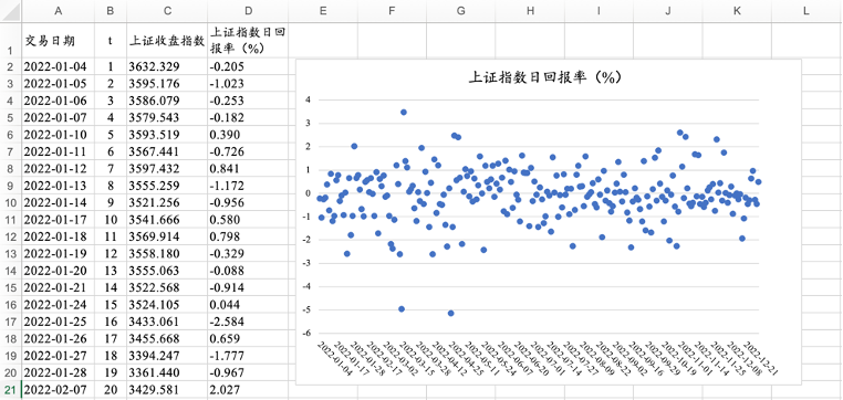 图16.5 2022年242个交易日的上证指数日回报率的时序图