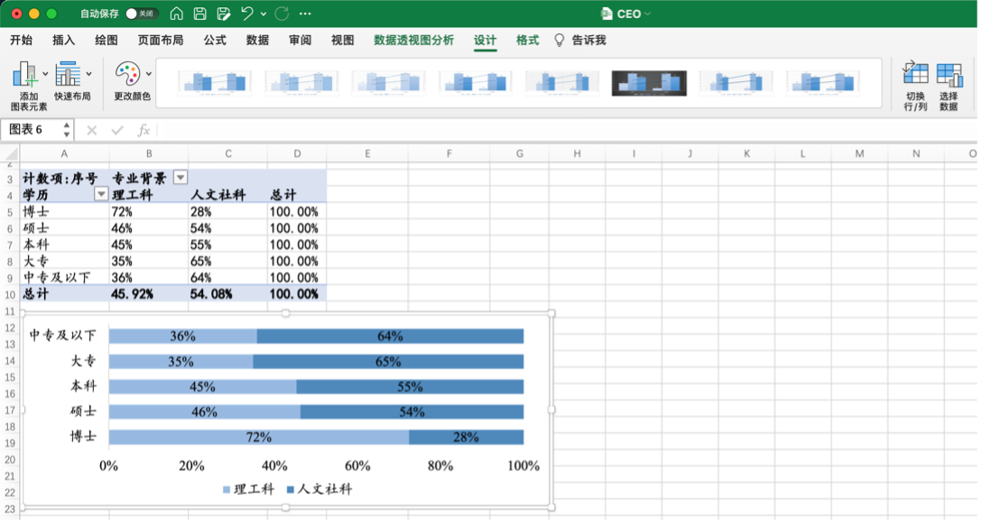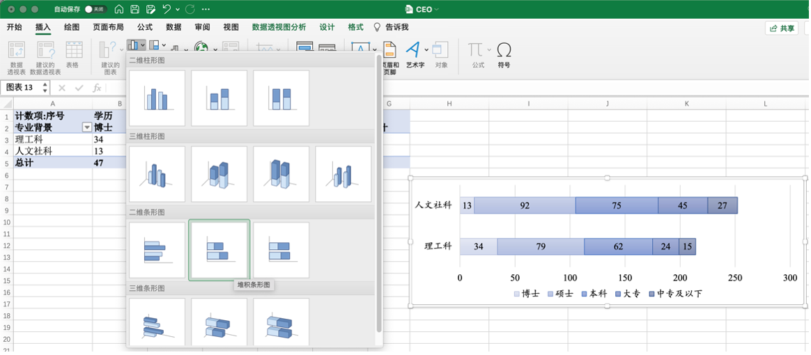 首先利用数据透视表创建一个定性变量和一个定量变量的列联表