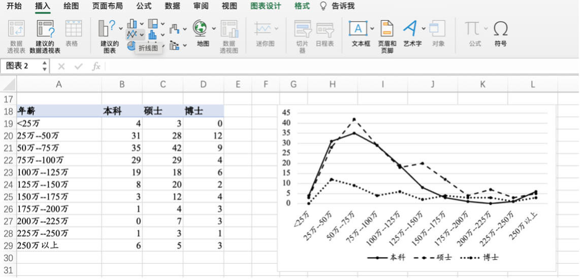 首先选中两列定量数据,然后单击“插入” →“散点图” ,创建散点图