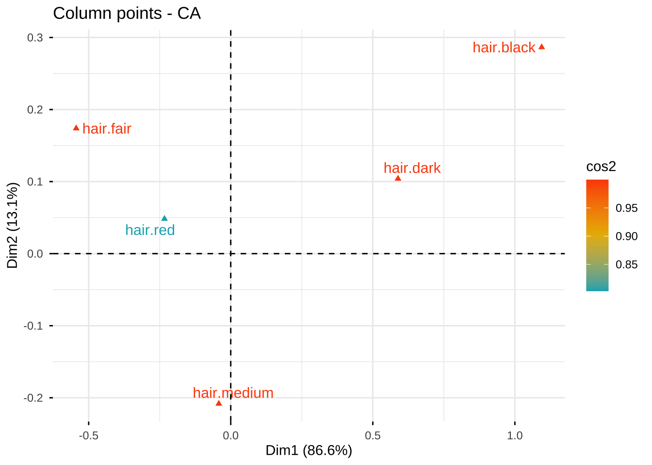 colnames(caith) <- c("hair.fair", "hair.red", "hair.medium",