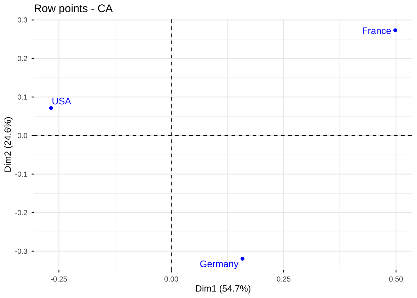 res.ca$col$coord[,1:2] Dim 1 Dim 2