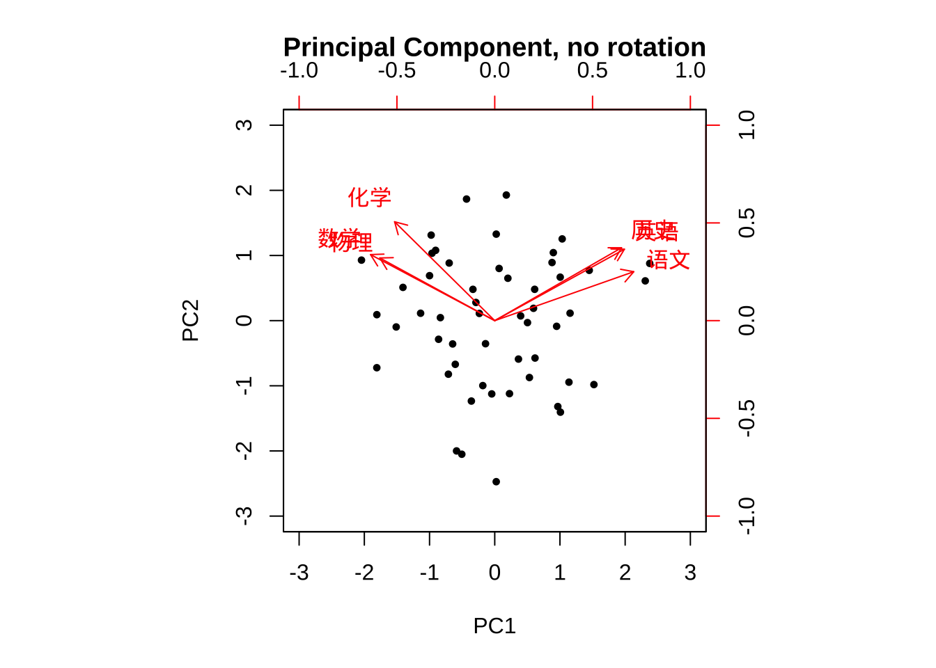 arrange(desc(RC1))   数学 物理 化学 语文 历史 英语         RC1         RC2