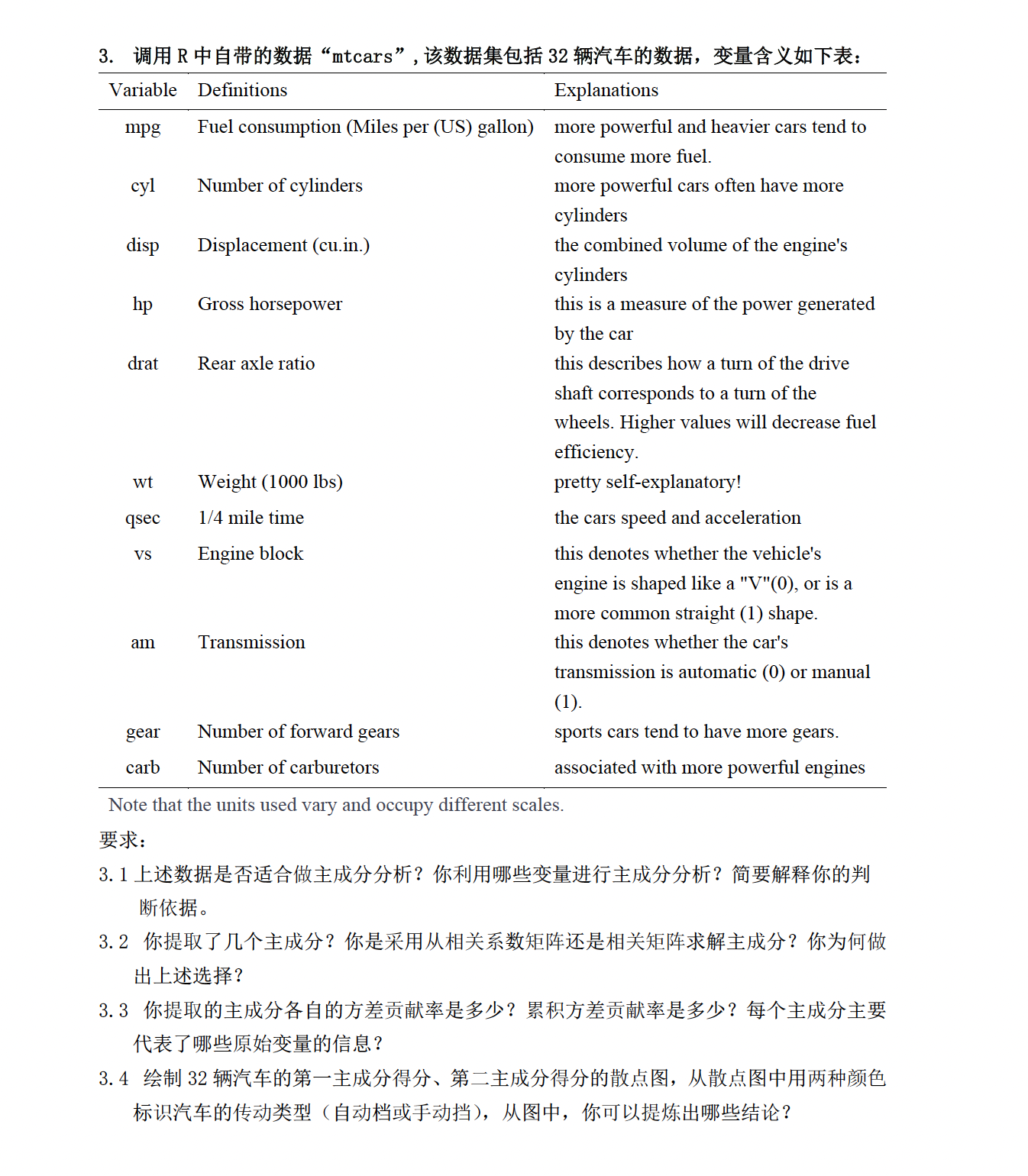 注意题目3.2需要更正为:你提取了几个主成分,是相关系数矩阵还是协方差矩阵?你为何做出上述选择?