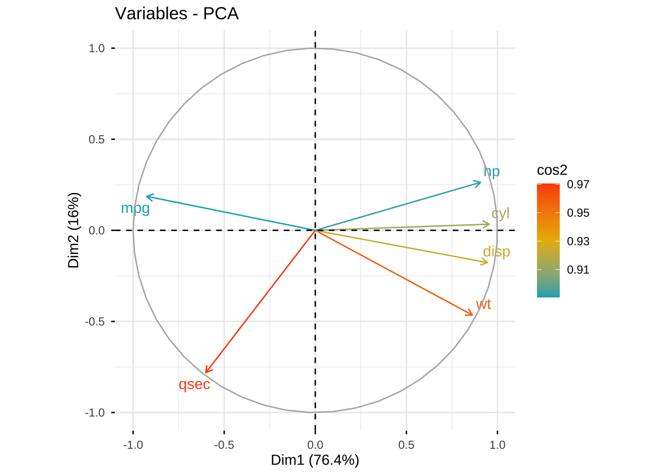 qsec -0.2804946 -0.79584714  0.06560722  0.26481108  0.4496718 -0.10637755