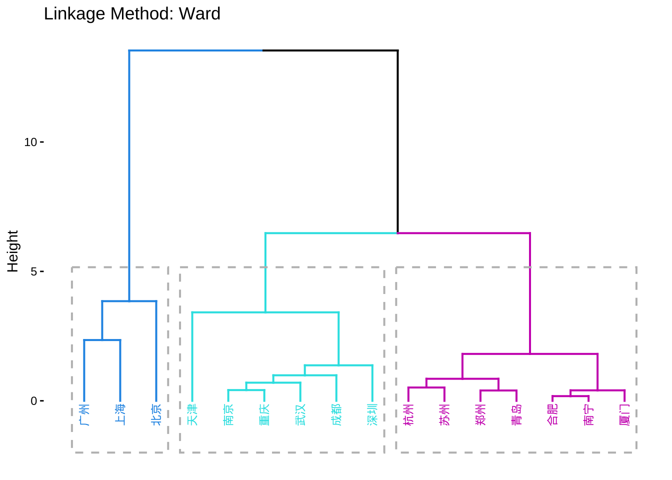 main = "Linkage Method: Ward")  #矩形框下沿